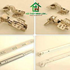 - Phụ kiện: Bản lề giảm chấn, Ray bi bản lề chính hãng